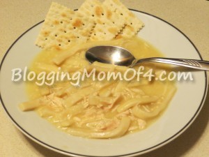This recipe calls for frozen noodles. I had never heard of frozen noodles but was able to find one at Walmart. Just one brand but they were the frozen egg noodles that the recipe calls for. If you can’t find these in your grocery store, you could use regular noodles. There’s enough liquid in the recipe that the noodles should cook. I would just watch so the noodles don’t get too mushy and cut the cooking time down. Otherwise, you could boil your noodles ahead of time and just mix them in at the end or just serve the creamy chicken over the top.