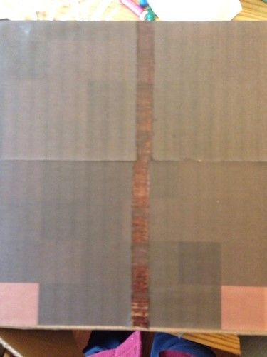 - I also used clear packing tape to finish off the edges and any seams. Then I looked up the weather and with the chance of rain on Halloween, I decided to cover the entire box with clear packing tape. It will make it hold up a lot better…especially if we do get some rain.