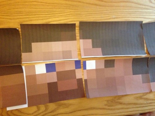 2. Print the patterns in full color. Depending on your printer, you may have to adjust. My printer offered a setting to print in tile form for the Steve pattern. (Make sure you keep the papers in order so that you know how the puzzle fits together. Mine were not in order and it took awhile for me to figure out which order to put them in). The creeper printed out in full sheets.