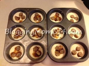 Also, I used the muffin paper cups to try to keep from a mess, BUT couldn’t successfully get the “pancakes” out of them without losing half of the “cake”.