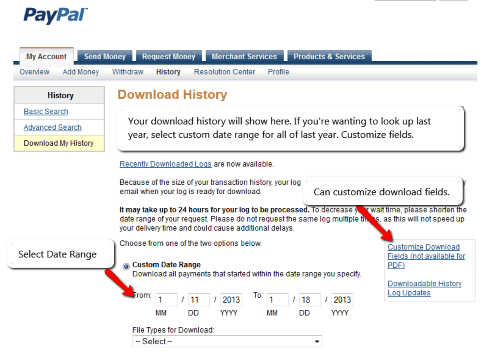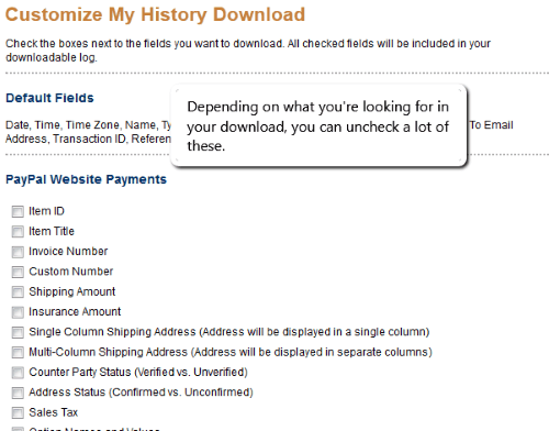 When you’ve selected your fields, go back and click download. If your report is large, PayPal will email you when your report is ready.